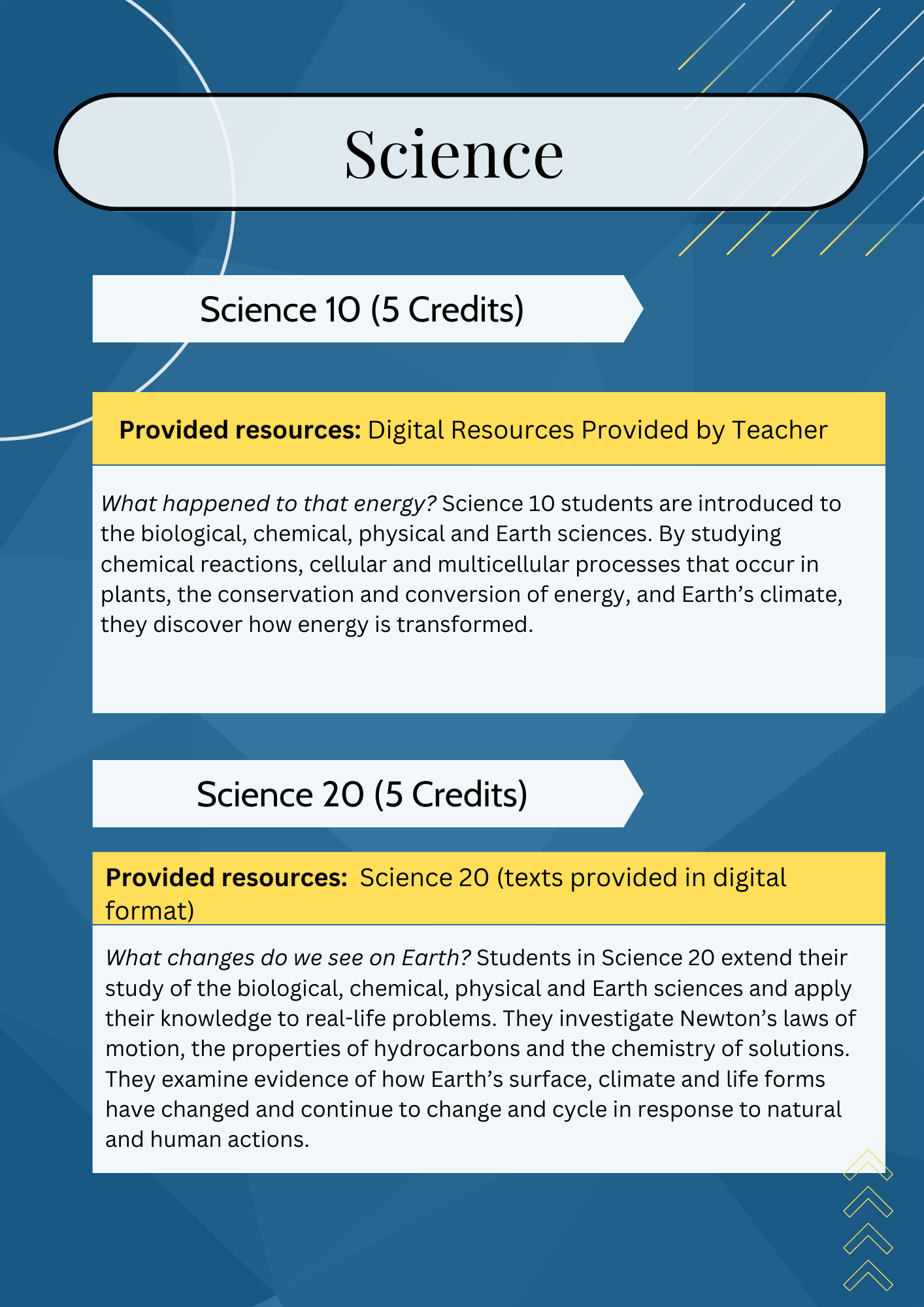SCIENCESScience 10Science 20