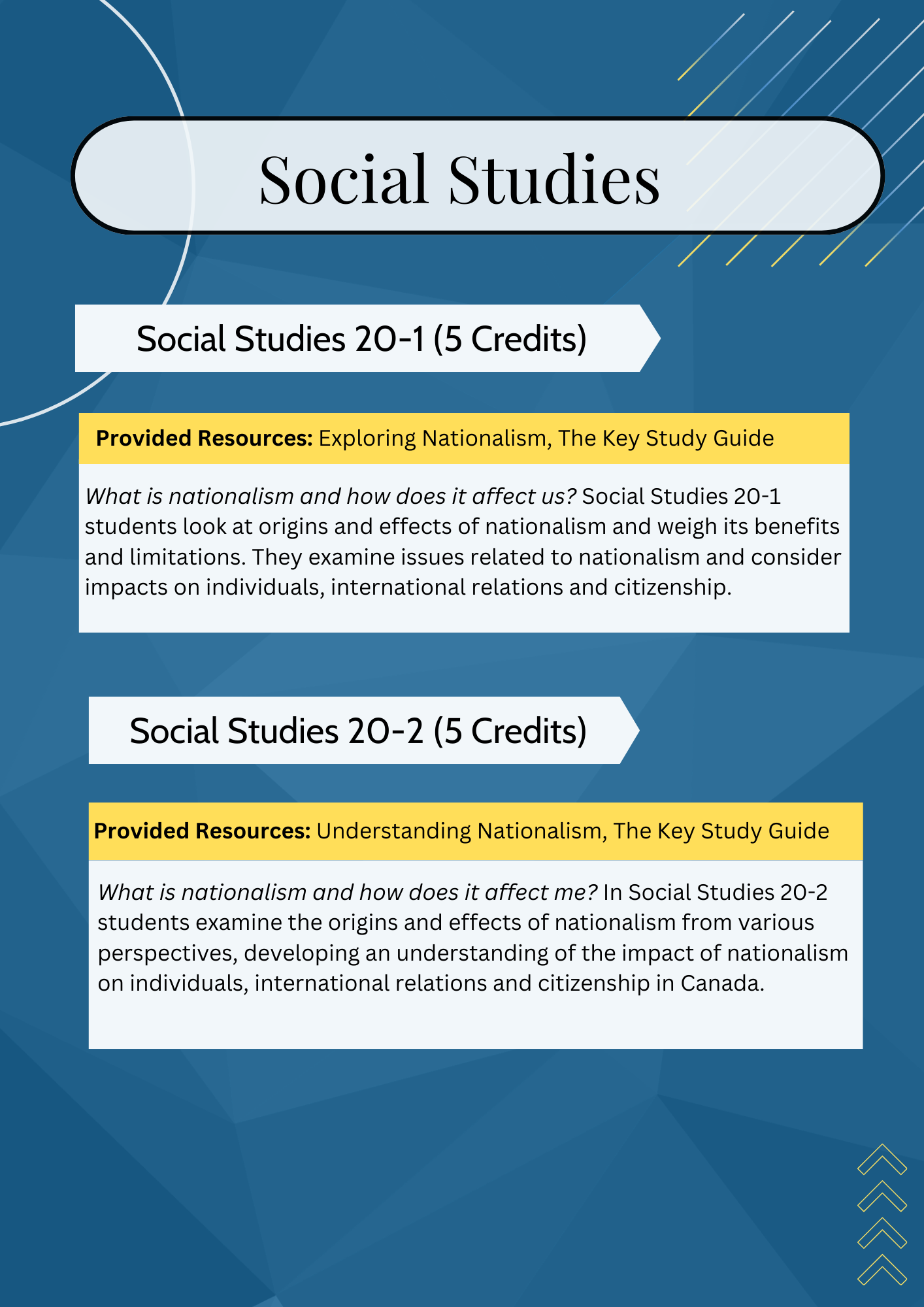 | SOCIAL STUDIES | Social 10-1 | Social 10-2 | Social 20-1 | Social 20-2 |